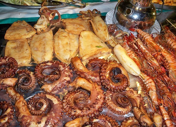 Das Mittagessen besteht aus einem leckeren Barbecue-Buffet mit Fisch und Schalentieren nebst Pommes, Reis und Brot als Beilagen. Zum Nachtisch gibt es Kostproben verschiedener tropischer Früchte und des afrikanischen Likörs Amarula.