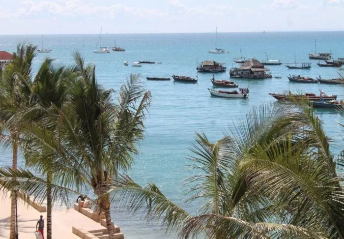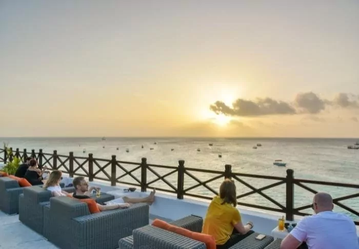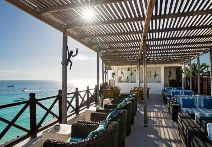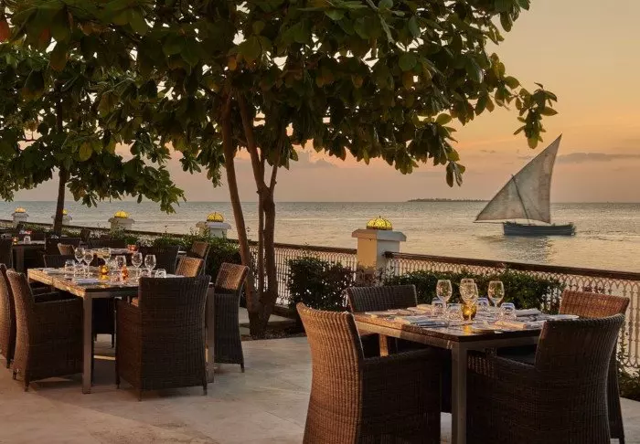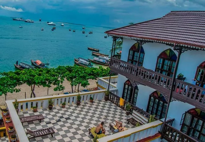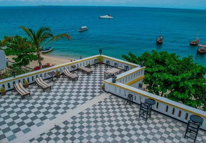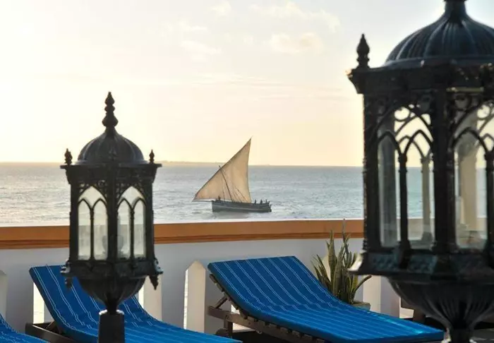 Anhand seiner zentralen Lage in Stone Town – direkt am Wasser – kann man von der Terrasse aus den lebhaften Verkehr der Handels- und Fischerboote verfolgen.