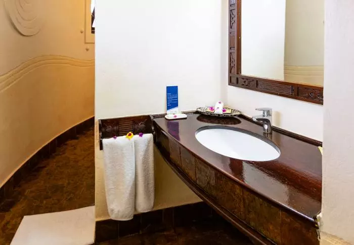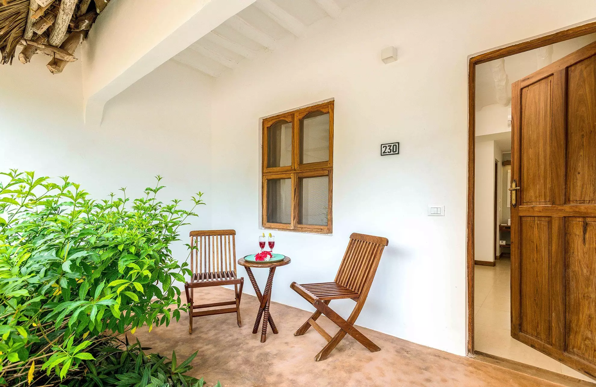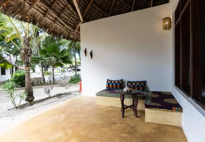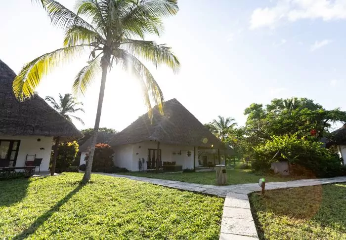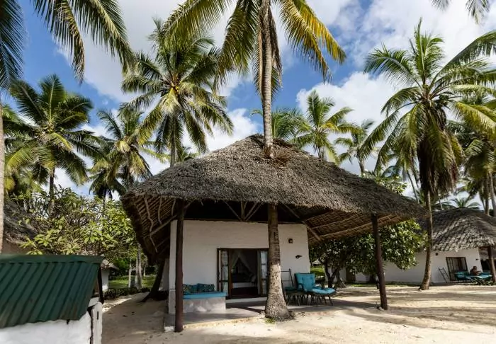 56 der Standardzimmer befinden sich in runden Hütten, die in echtem afrikanischem Stil mit Strohdächern erbaut worden sind. In jeder Hütte sind zwei Zimmer, aber jedes Zimmer kann von der gegenüberliegenden Seite der Hütte über einen separaten Eingang betreten werden. Es fühlt sich daher so an, als hätte man seine eigene Hütte. Alle Zimmer verfügen über eine eigene Terrasse, eine ansprechende Einrichtung und viel Platz. Sie sind nur wenige Gehminuten vom Pool und vom Strand entfernt.