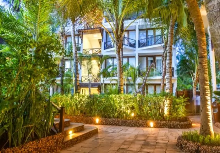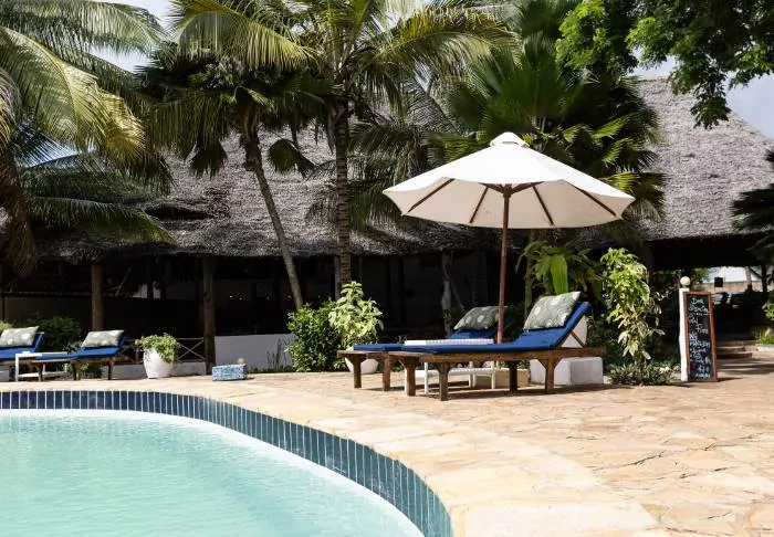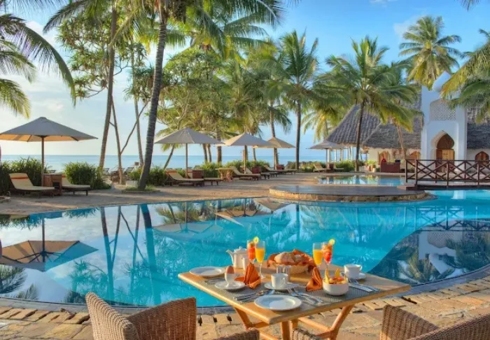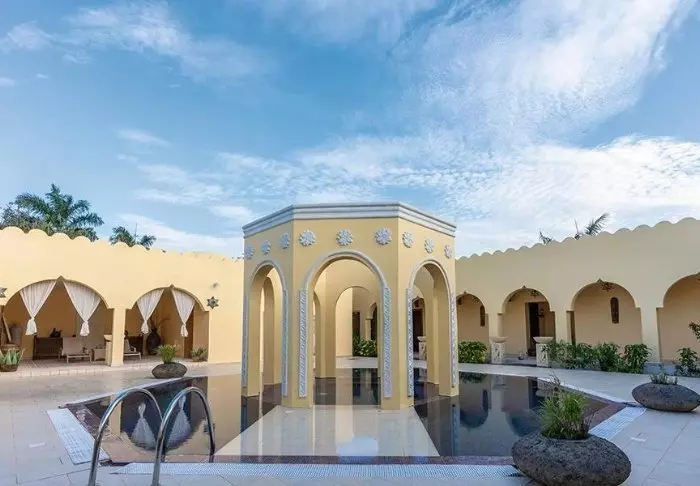 Das Hotel ist in Familienbesitz und im klassischen Sansibar-Stil eingerichtet. Es hat einen eigenen Privatstrand und liegt beinahe in einem großen botanischen Garten mit mehr als 3000 exotischen Pflanzen, Bäumen und Blumen.