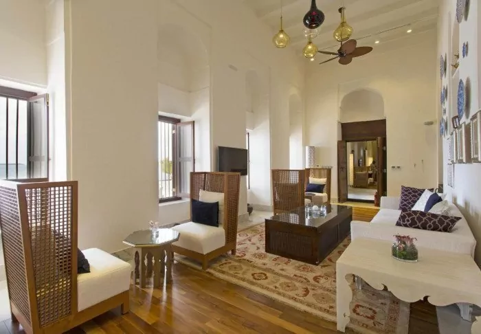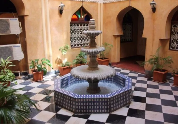 Das Hotel besteht aus einem alten, majestätischen Gebäude, das in arabischem Stil eingerichtet worden ist und insgesamt 29 Zimmer beherbergt. Die meisten Zimmer haben einen Balkon mit Aussicht über den Strand oder den Swimmingpool im Hof. Alle Zimmer haben Bad, Toilette, Aircondition, Kühlschrank, Telefon und Satellit-/Kabel-Fernseher. Ferner gibt es im Hotel Swimmingpool, Souvenir-Shop, Internetanschluss und Wäscherei.