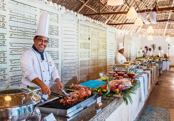Im Restaurant des Hotels werden verschiedene leckere, regionale Gerichte mit Fisch und Meeresfrüchten sowie unterschiedliche Gerichte aus der afrikanischen, indischen und arabischen Küche serviert. Die Gerichte sind stets frisch und lecker. Das Frühstück besteht aus einem Buffet, Eiern und frisch zubereiteten Pfannkuchen, genau so, wie Sie sie lieben.