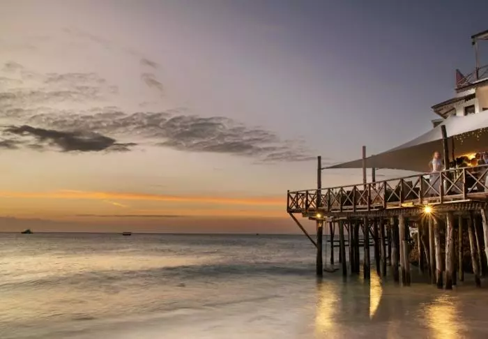Wenn Sie sich dann endlich von der Lounge losgerissen haben, können Sie den langen Steg entlanggehen und mehr Aussicht und Meeresbrise sowie einen guten Kaffee in der gemütlichen Loungebar am Ende der Mole genießen. Bei Ebbe können Sie von den Stufen des Stegs direkt ins Wasser hüpfen und anschließend ein kaltes Getränk und einen Snack an der Bar genießen.