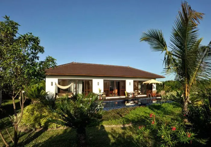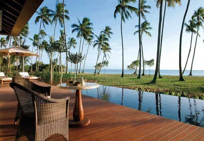 Das Luxusresort befindet sich an der Südwestküste der Insel, nur eine gute Autostunde vom internationalen Flughafen entfernt. Aber man glaubt, in einer ganz anderen Welt gelandet zu sein. Die 66 ruhigen und exklusiven Villen sind von einem tropischen Garten mit Aussicht auf Kokospalmen umgeben, welche am kilometerlangen weißen Sandstrand im Wind wogen.