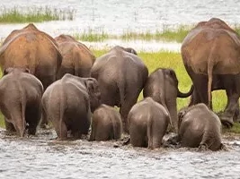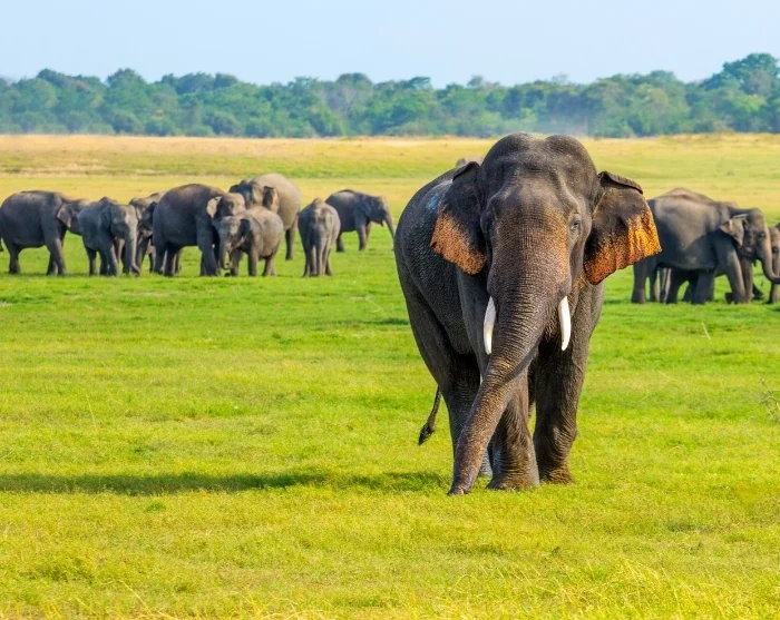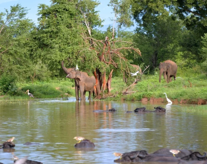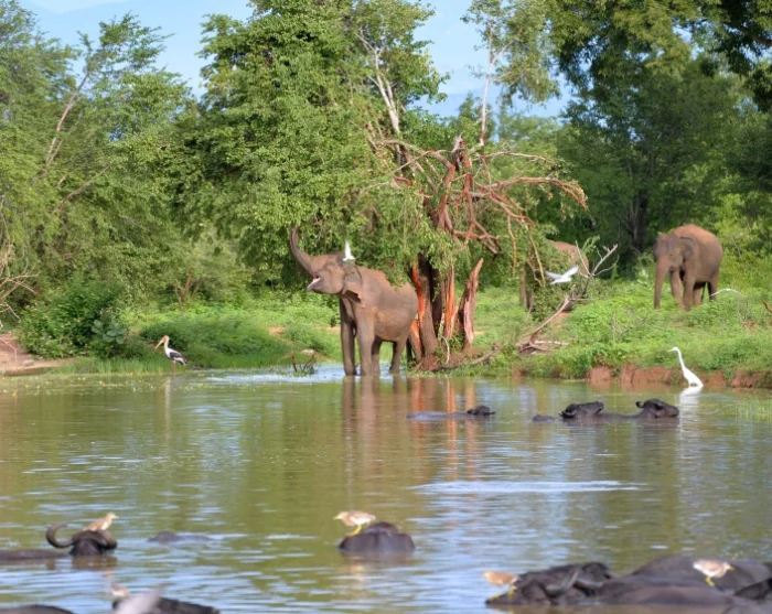 Dort lebt einer der größten Elefantenbestände von Sri Lanka (bis zu 500 Tiere!). Zudem ist der Nationalpark dafür bekannt, der beste Ort für ein Erlebnis mit den sanften Riesen zu sein.