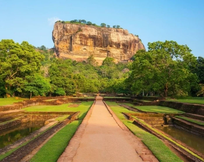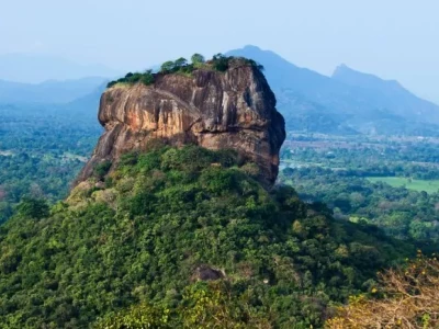 Sigiriya ist eine 200 Meter hohe spektakuläre Klippe, die sich in der bewaldeten Landschaft erhebt. Die Klippe ist für die Ruinen auf ihrem Gipfel bekannt, welche mit 477 v. Chr. datiert worden sind.