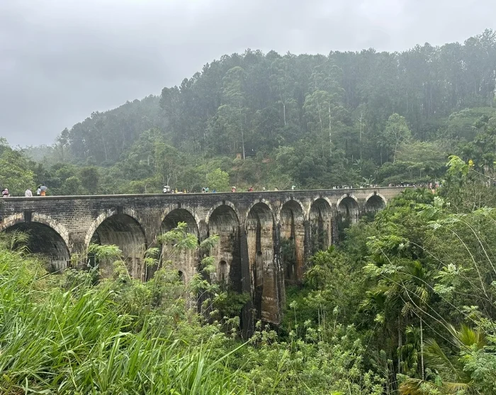 Neben den Schienen könnte Ihnen Gesellschaft von kleinen Eidechsen und bunten Vögeln geleistet werden. Bei perfektem Timing erleben Sie einen Zug, der über die Brücke fährt – ein magischer Moment, der die Architektur der Brücke, die üppige Landschaft und die ikonischen Züge Sri Lankas verbindet.