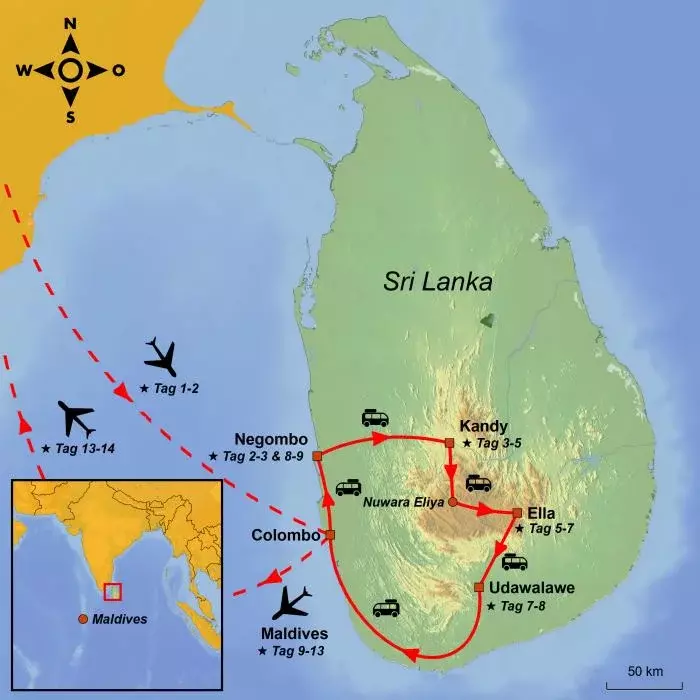 Die Reise neigt sich nun dem Ende zu, und Sie kehren mit Ihrem Koffer voller Erlebnisse und Sinneseindrücke aus dem Süden Sri Lankas und einer der maledivischen Paradiesinseln nach Hause zurück.