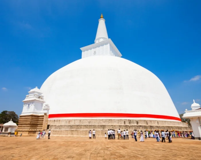 Anschließend gehen Sie weiter zur Klosterruine und den vielen Stupas der Stadt. Unter anderem kommen Sie an dem 70 Meter hohen Jetavanarama-Stupa vorbei, einem der größten Bauwerke des Altertums und dem ikonischen, weißen Ruwanwelisaya-Stupa, von dem es heißt, dass dort die größte Sammlung Buddha-Reliquien liegt. Hier bekommen Sie einen seltenen Einblick in die in Anuradhapura nach wie vor lebendige Praxis des Buddhismus.