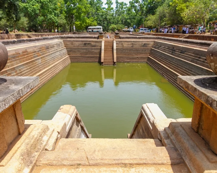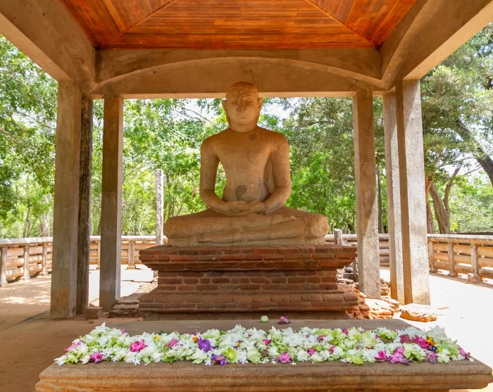 Zum Abschluss besichtigen Sie die Abhayagiri-Anlage und können dort die gut erhaltenen Zwillingsteiche erkunden und die Ruhe in der üppigen Natur vor der Samadhi-Buddha-Statue genießen, die in der Meditationshaltung Buddhas, „Dhyana Mudra“ sitzt. Hier können Sie die Seele mit den Beinen baumeln lassen, während Sie die vielen Düfte und gedämpften Geräusche aus den Tempeln und der Natur auf sich wirken lassen.
