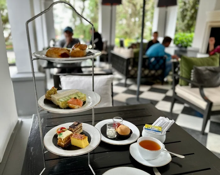 Eines der ikonischen Häuser der Stadt ist das Grand Hotel aus dem Jahr 1891, ursprünglich die Residenz des britischen Gouverneurs. Hier erwartet Sie britisches High Tea, wo Sie sich entspannen und die historische Atmosphäre genießen können, mit Tee von den umliegenden Plantagen, serviert in feinen Porzellantassen. Begleitend zum Tee gibt es kleine Sandwiches, frisch gebackene Scones und süße Kuchen im echten kolonialen Stil, Erinnerungen an vergangene Zeiten weckend.