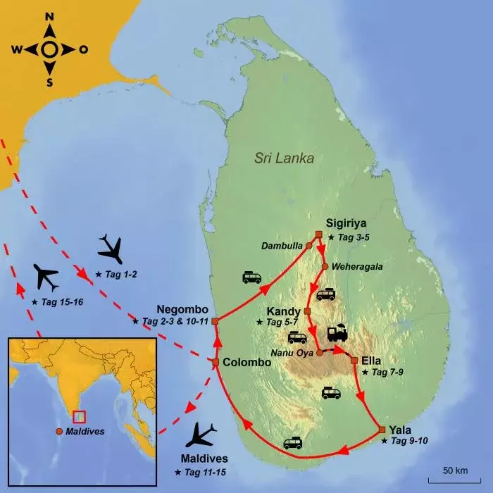 Diese Reise vereint einige der beeindruckendsten Kontraste Südasiens, von Sri Lankas lebendigem Kulturerbe und grünen Hochländern bis hin zu den unberührten weißen Stränden und türkisfarbenen Lagunen der Malediven.