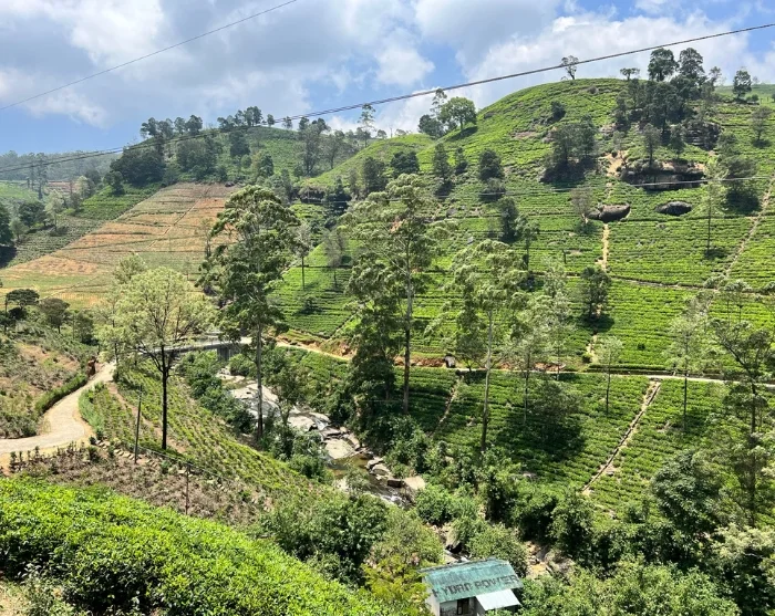 Bei der Ankunft in Nanu Oya steigen Sie in den klassischen Zug ein, der sich bald gemächlich durch Sri Lankas üppige Highlands windet. Machen Sie es sich bequem und genießen Sie Ihre mitgebrachten Snacks, während der Zug sich durch sanfte Kurven windet und Ausblicke auf lebendige grüne Teeplantagen, nebelige Bergspitzen und winzige Dörfer bietet, in denen Kinder fröhlich lächeln und winken.