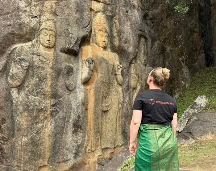 Unterwegs halten Sie am Buduruwagala-Tempel, dessen Ursprünge auf das 10. Jahrhundert zurückzuführen sind und der für seine gut erhaltenen Felsreliefs bekannt ist. Der Tempel besteht aus einer größeren Felsenseite mit einer 16 Meter hohen Buddha-Statue umgeben von sechs kleineren Figuren, die Buddha in unterschiedlichen Meditationshaltungen zeigen. Ihren Detaillierungsgrad und ihren friedlichen Ausdruck können Sie in aller Ruhe auf sich wirken lassen, da das Leben in Buduruwagala ruhiger abläuft als an vielen der bekannteren Tempel auf Sri Lanka.