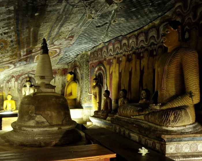 Der Grottentempel liegt mitten in der fruchtbaren Landschaft in einem großen, breiten, zum Himmel ragenden Felsen. Im Tempel können sie die bemerkenswerte Felsenanlage mit mehr als 150 Buddha-Statuen, Gemälden und Figuren von Königen und Gottheiten erkunden. Die Wandmalereien erstrecken sich über mehr als 2.000 m², gehören zu den am besten erhaltenen des Landes und erzählen lebendige Geschichten aus der Welt des Buddhismus.