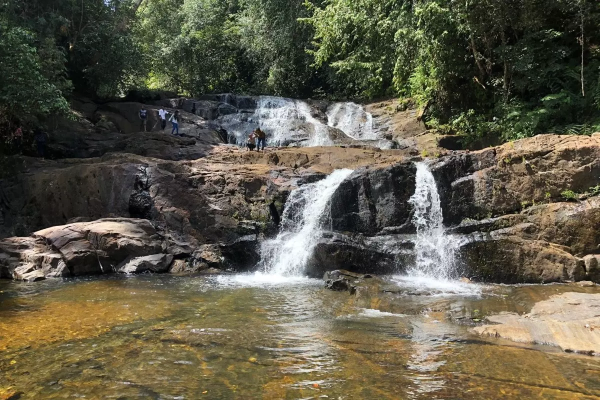 In den nächsten 6–7 Stunden wandern sie 16 km durch hügeliges Gelände, vorbei an Reisfeldern, Teeplantagen und Nadelwäldern. Sie sehen malerische Dörfer, Nebelregenwälder mit niedrig hängenden Wolken, rauschende Wasserfälle und glasklare Bäche. Denken Sie an Ihre Badebekleidung und ein Handtuch, falls Sie baden möchten. Unterwegs können Sie sowohl Rehe als auch Büffel, Affen, Wildschweine und verschiedene Vogelarten beobachten.