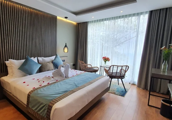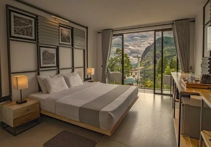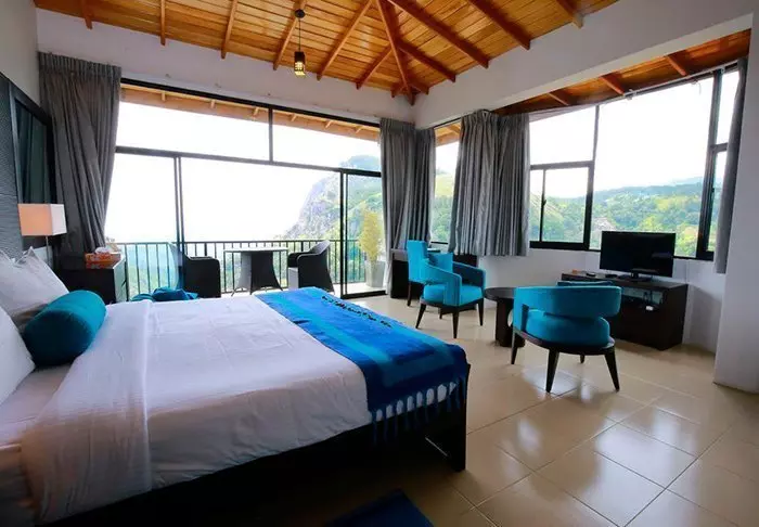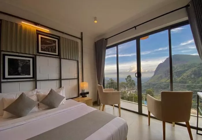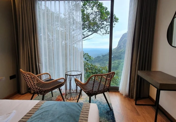 Das Design des Hotels ist von japanischem Minimalismus inspiriert – besonders spürbar im Deluxe-Zimmer, in dem Sie übernachten werden. Das Zimmer ist in beruhigenden Farbtönen gehalten und mit viel Liebe zum Detail eingerichtet. Natürliche Materialien und geschmackvolle Holzarbeiten schaffen eine stilvolle, gleichzeitig rustikale Atmosphäre. Zu den Annehmlichkeiten zählen Klimaanlage, WLAN, Deckenventilator, Minibar, Safe, Tee- und Kaffeezubereiter sowie ein Fernseher. Das Badezimmer ist mit einer begehbaren Dusche, Bademantel und Slippern sowie ausgewählten Pflegeprodukten ausgestattet. Genießen Sie bereits am Morgen von Ihrem privaten Balkon oder Ihrer Terrasse bei einer Tasse Ceylon-Tee den Panoramablick.