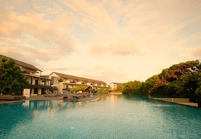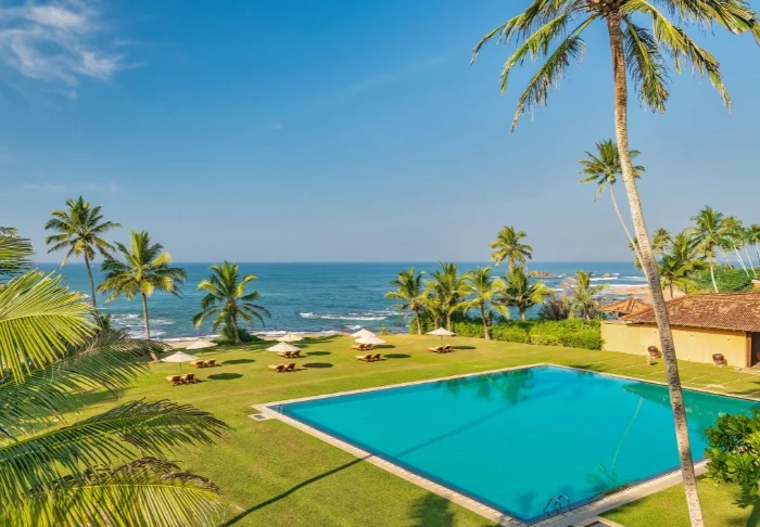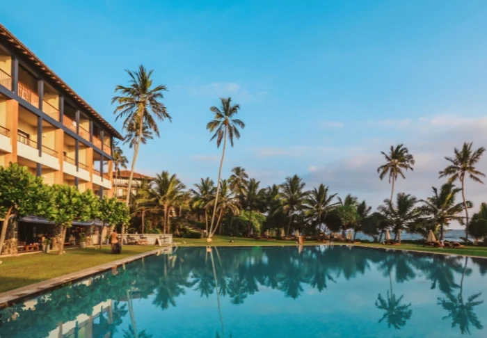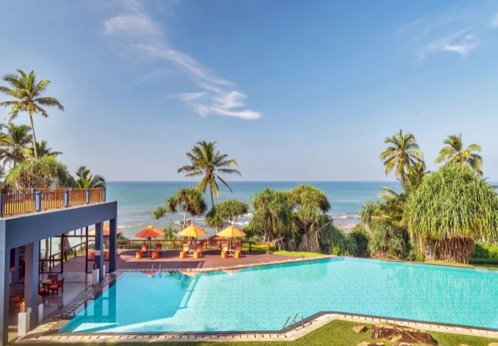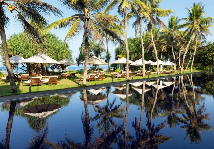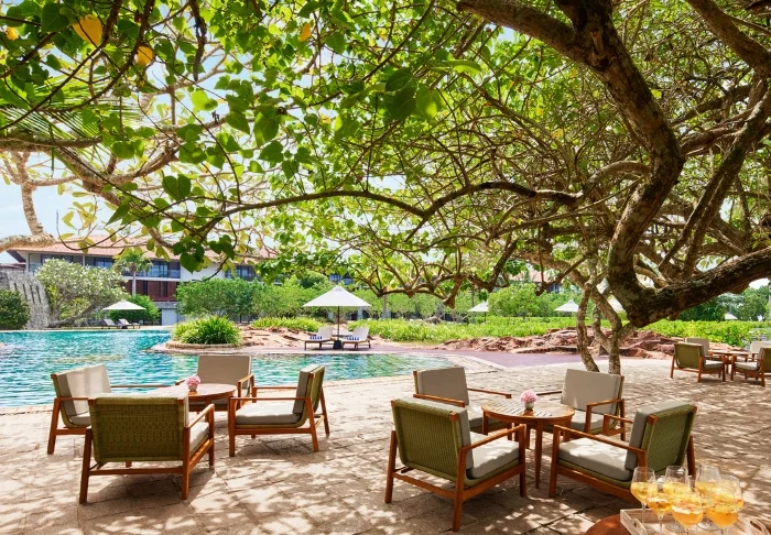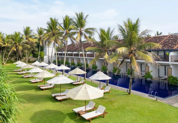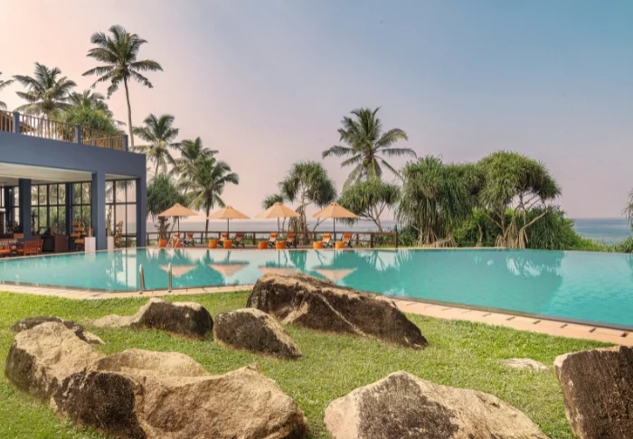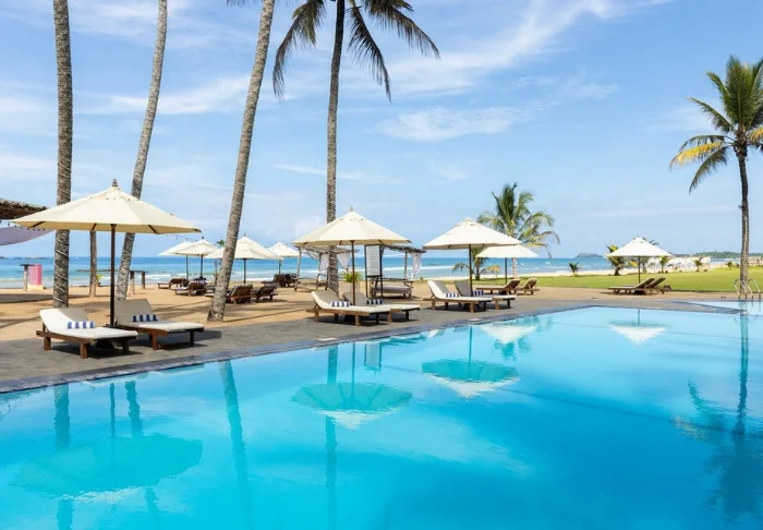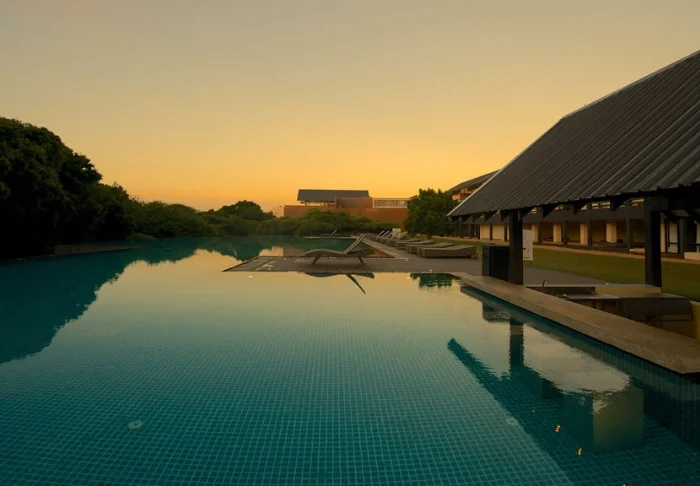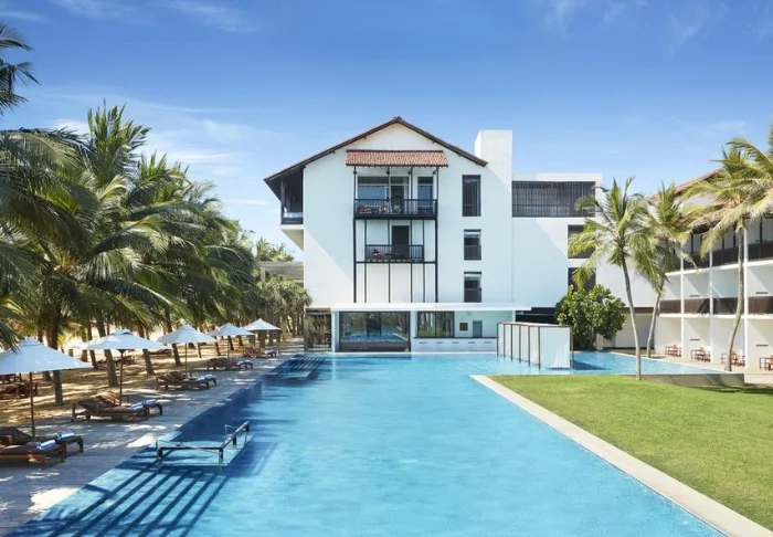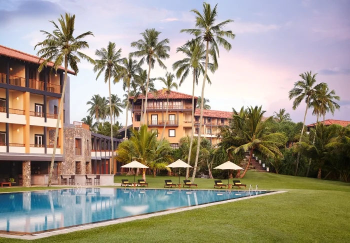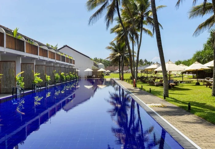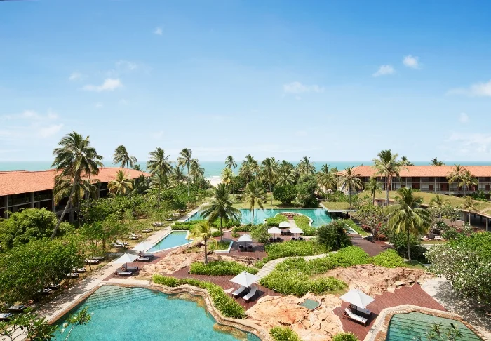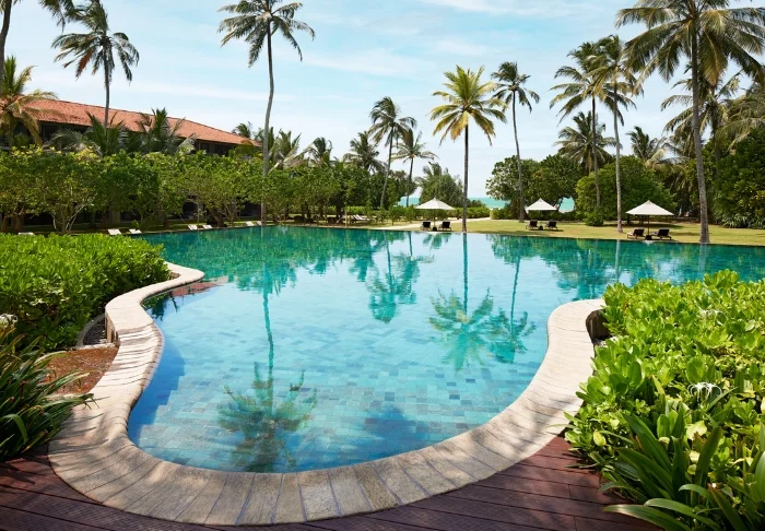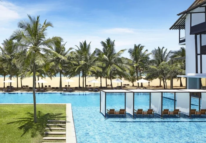 Das Cinnamon Bentota Beach verfügt über eine weitläufige Poollandschaft mit mehreren Schwimmbecken, die sich wie kleine Oasen inmitten tropischer Vegetation präsentieren.