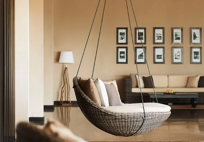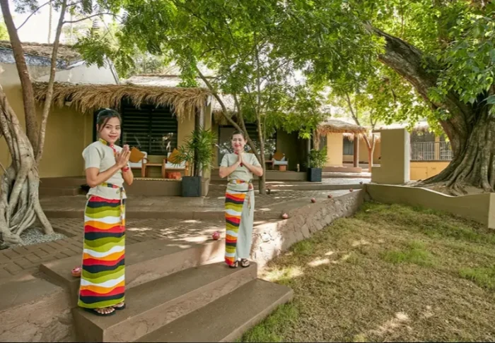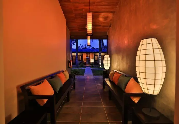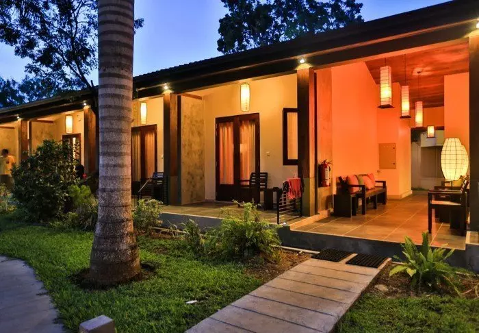 Das Resort bietet insgesamt 55. mind. 52 m2 geräumige Zimmer. Alle Zimmer besitzen eine eigene Veranda zu den herrlichen, gepflegten Gärten hin. Dort können Sie verschiedene Zugvögel oder endemische Vogelarten beobachten. Die Zimmer sind schön mit dunklen Holzmöbeln, Textilien in herrlichen Farmen und eleganten Papierlaternen eingerichtet. Sie alle sind mit Klimaanlage, Deckenventilator, WLAN, Telefon, Safe, Sitzecke und Schreibtisch eingerichtet. Es gibt außerdem einen Wasserkocher, sodass Sie sich eine Tasse Tee oder Kaffee machen und ihn auf der Veranda genießen können. Das Badezimmer ist mit einer Regendusche, einem Föhn und kostenlosen Toilettenartikeln ausgestattet.