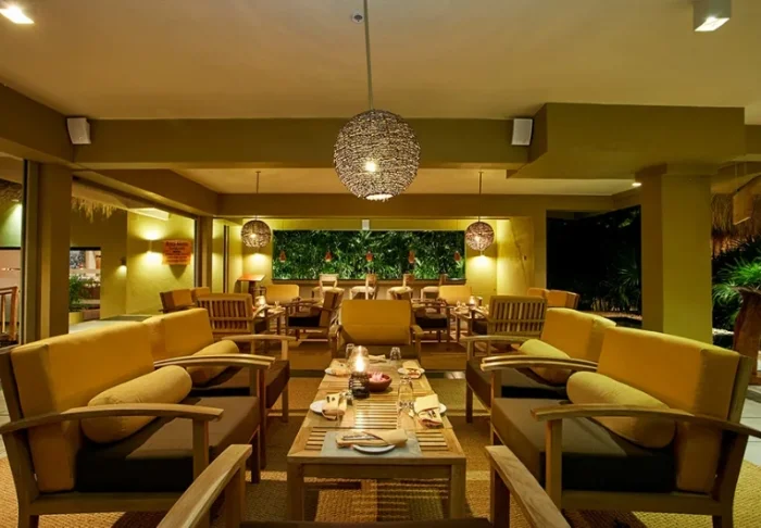 Während Ihres Aufenthalts können Sie Ihre Halbpension im Restaurant des Resorts genießen, das eine vielfältige Speisekarte ansprechender Speisen aus frischen Zutaten führt. Außerdem gibt es eine Poolbar, in der tagsüber salzige Snacks und eiskalte Getränke serviert werden, während Sie abends die Bar des Resorts auf der Dachterrasse aufsuchen können. Dort können Sie den Tag zu den Farbschattierungen des langsamen Sonnenuntergangs im Indischen Ozean ausklingen lassen.