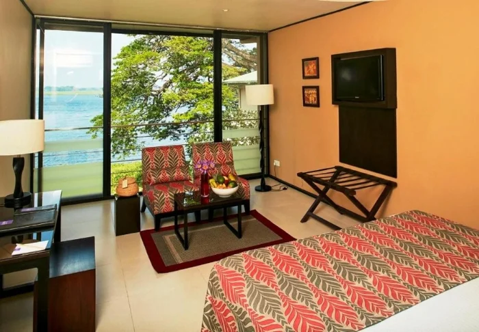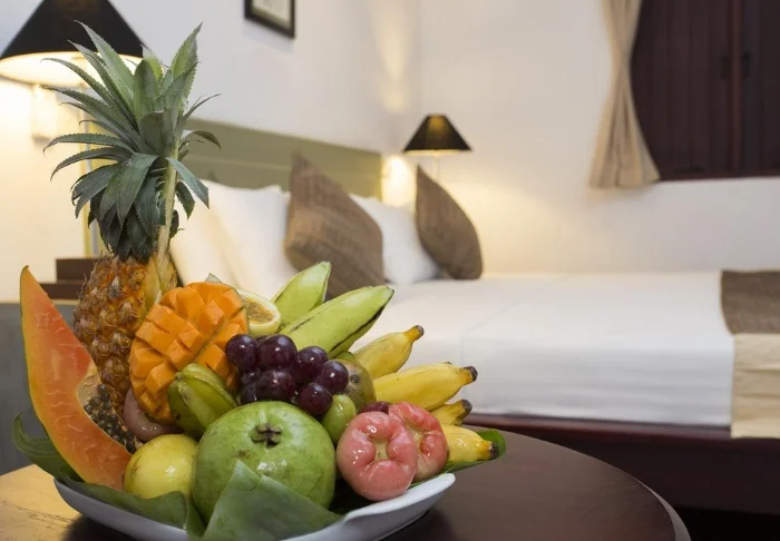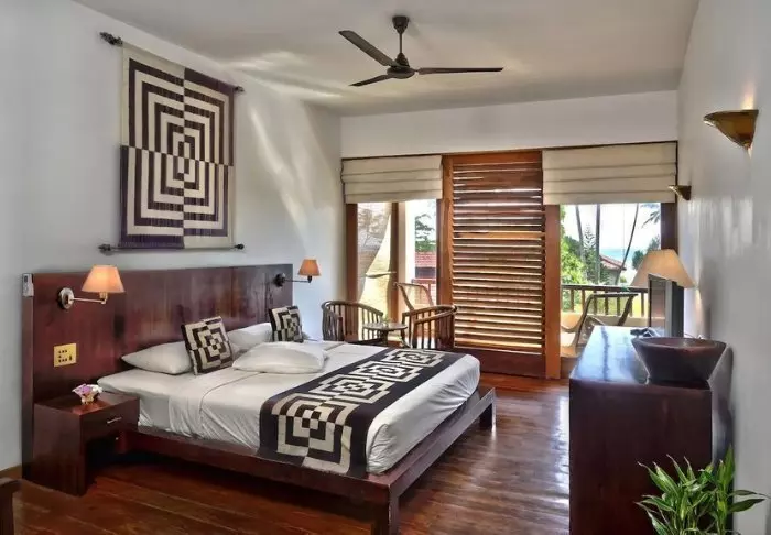 Ihre Unterkunft ist ein großzügiges Superior Zimmer mit rustikalem Dekor. Dunkle Holzmöbel und helle Textilien schaffen eine warme, authentische Atmosphäre. Von Ihrem privaten Balkon blicken Sie auf die Gärten und das Meer – Palmen wiegen sich im Wind und das sanfte Rauschen der Wellen bietet die perfekte Kulisse für Ihren Morgenkaffee oder eine entspannte Lesestunde. Alle Zimmer verfügen über Klimaanlage, WLAN, Deckenventilator, Safe, Minibar, Telefon, TV, Möglichkeiten zur Tee- und Kaffeezubereitung sowie ein Bad mit begehbarer Dusche, Bademantel, Hausschuhen und kostenfreien Pflegeprodukten.