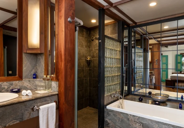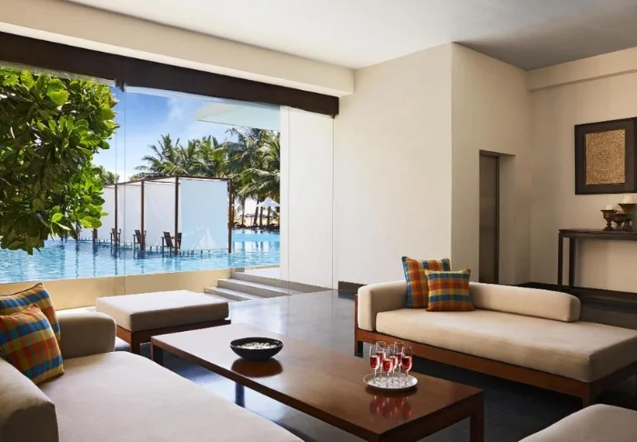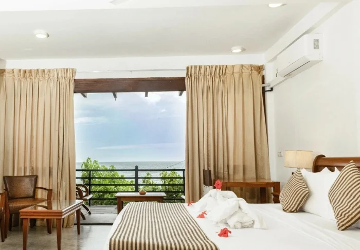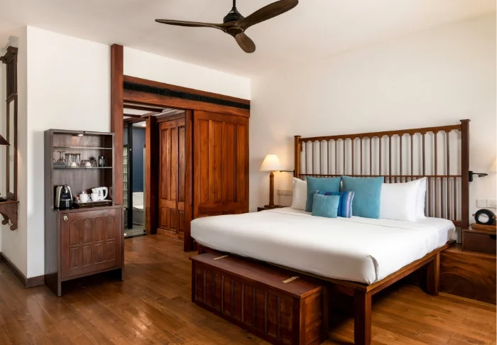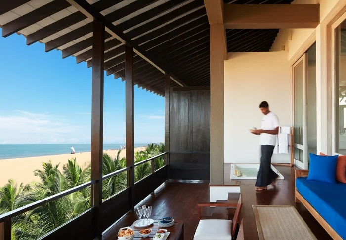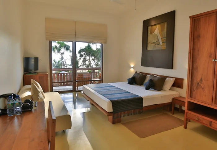 Standardmäßig übernachten Sie in einem Luxury Room, der mit sri-lankischen Details eine warme und einladende Atmosphäre schafft. Von Ihrem privaten Balkon oder Ihrer Terrasse genießen Sie einen herrlichen Blick in den grünen Garten des Hotels oder auf den faszinierenden Indischen Ozean. Innen erwarten Sie viel Platz und komfortable Ausstattung wie Klimaanlage, WLAN, Safe, Minibar, Kaffee- und Teezubereitungsmöglichkeiten sowie TV. Im eigenen Badezimmer stehen Ihnen außerdem luxuriöse Pflegeprodukte, ein Bademantel und eine Regendusche zur Verfügung.