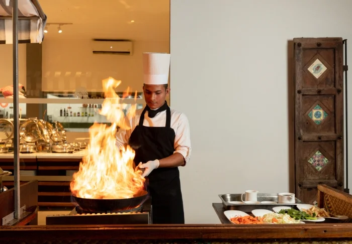 Am Morgen begrüßt Sie das Hotelrestaurant mit einem reichhaltigen Frühstücksbuffet und echter sri-lankischer Gastfreundschaft. Besonders freuen dürfen Sie sich auf die Live-Cooking-Stationen, an denen Ihr Frühstücksei ganz nach Wunsch zubereitet wird. Auch im Laufe des Tages sind Sie nie weit von einer guten Mahlzeit entfernt, denn sowohl das Restaurant als auch die Poolbar servieren eine köstliche Auswahl an lokalen und internationalen Klassikern.