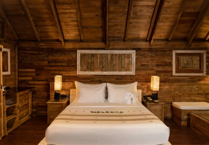 Ihr Superior Zimmer befindet sich eingebettet im Garten der Anlage und ist im rustikalen, entspannten Stil gehalten, der sich perfekt in die Umgebung einfügt. Jedes Zimmer verfügt über Klimaanlage, Minibar, TV sowie ein Badezimmer mit kostenfreien Pflegeprodukten und der Möglichkeit, unter freiem Himmel zu duschen. Entspannen Sie auf Ihrer privaten Veranda im Schatten und genießen Sie die Stille – unterbrochen nur vom sanften Zwitschern der Vögel.