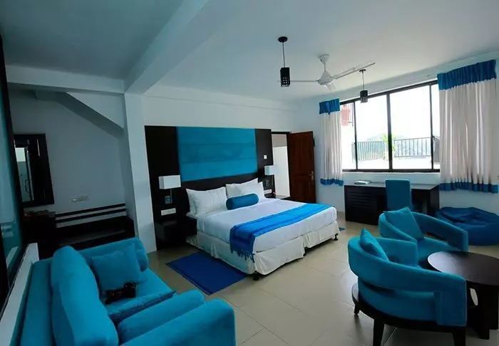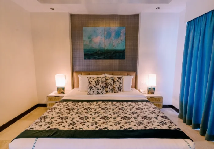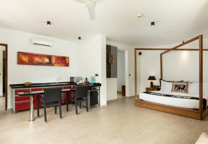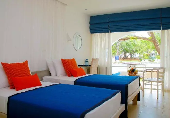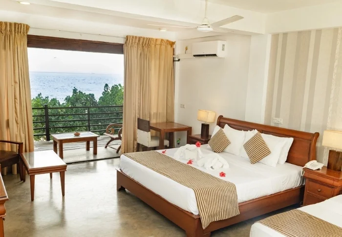 Während Ihres Aufenthalts übernachten Sie in der Regel in einem Deluxe-Zimmer. Die Ausstattung ist hell und schlicht, dennoch verfügt jedes Zimmer über Klimaanlage, WLAN, Minibar, TV, Telefon, Tee- und Kaffeezubereitungsmöglichkeiten sowie ein Badezimmer mit begehbarer Dusche und kostenlosen Pflegeprodukten. Genießen Sie auf Ihrem privaten Balkon die sanfte Meeresbrise und das tropische Flair, das durch den palmengesäumten Pool des Hotels und den glitzernden Indischen Ozean unterstrichen wird.