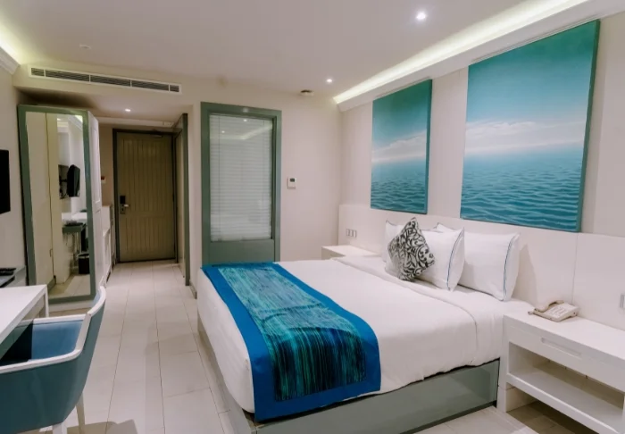 Sie übernachten in einem modern eingerichteten Deluxe-Zimmer, dessen helle und sanfte Farbtöne die tropische Umgebung widerspiegeln. Jedes Zimmer verfügt über Klimaanlage, TV, Safe, Minikühlschrank und ein Bad mit Dusche sowie kostenlosen Pflegeartikeln. Treten Sie hinaus auf Ihre private Terrasse und genießen Sie Ihren morgendlichen Kaffee, während sich die Farbpalette des Sonnenaufgangs über dem azurblauen Meer am Himmel entfaltet.