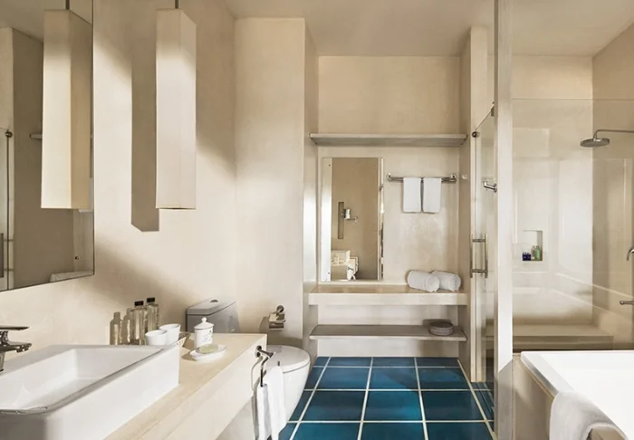 Während Ihres Aufenthalts wohnen Sie hier in einem Deluxe Zimmer mit heller Einrichtung und farbenfrohen Akzenten. Genießen Sie faszinierende Ausblicke aufs Meer, sowohl aus dem Zimmer als auch von Ihrem eigenen Balkon – vielleicht bei einem guten Buch. Ihr Zimmer verfügt über Klimaanlage, WLAN, eine Minibar mit kostenlosem Mineralwasser, einen Safe, Tee- und Kaffeezubereitungsmöglichkeiten sowie einen Fernseher. Im Bad erwarten Sie hochwertige Pflegeprodukte und eine begehbare Dusche mit Regenduschkopf.
