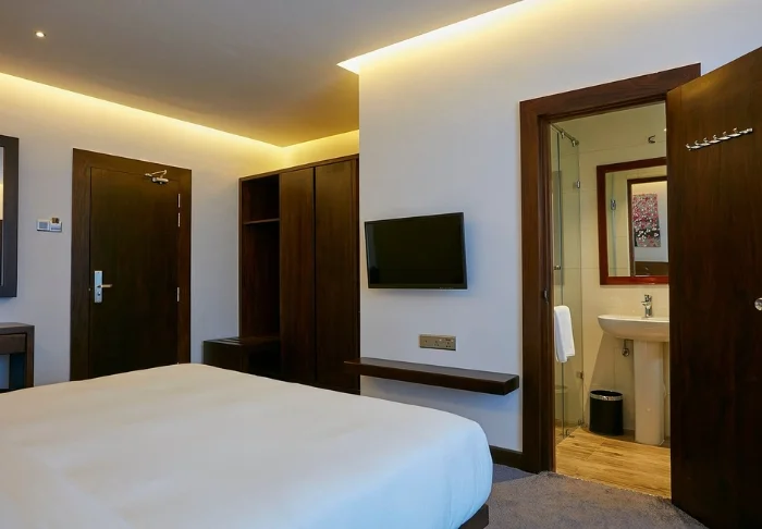 Während Ihres Aufenthalts übernachten Sie in einem Deluxe-Zimmer, in dem moderne Eleganz auf warme Farben und gemütliche Details trifft. Für Ihren Komfort ist an alles gedacht: WLAN, TV, Minibar, Safe sowie Tee- und Kaffeezubereitungsmöglichkeit stehen Ihnen zur Verfügung. Das Badezimmer lädt mit einer erfrischenden Regendusche und exklusiven Pflegeprodukten zum Entspannen ein. Bademantel und Slipper sorgen für zusätzlichen Wohlfühlfaktor.