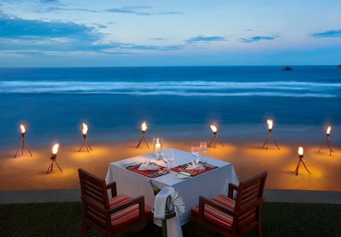Das Resort bietet eine Vielzahl an kulinarischen Möglichkeiten. Im Hauptrestaurant, dem Weligama Kitchen, genießen Sie internationale Gerichte in Buffetform zum Frühstück, Mittag- und Abendessen. Im Big Fish erwartet Sie ein wahres kulinarisches Erlebnis mit einer großen Auswahl an fangfrischem Fisch und Meeresfrüchten. Brauchen Sie zwischendurch eine kleine Stärkung, schauen Sie in der Mirissa Baking Company vorbei – hier gibt es köstlichen Kaffee und süße Leckereien. Die Tides Bar ist ideal für einen Cocktail oder ein Glas Wein, während Sie in der Surf’s Up Pool & Beach Bar mit tropischen Cocktails und verführerischen Tapas verwöhnt werden – dazu genießen Sie stets den atemberaubenden Ausblick auf die Weligama Bay.