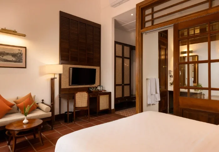 Sie übernachten im Heritage Room, in dem klassischer Stil und moderner Komfort harmonisch miteinander verschmelzen. Zur Ausstattung gehören Klimaanlage, Fernseher, Safe, Telefon, Möglichkeit zur Zubereitung von Tee und Kaffee, eine gemütliche Sitzecke sowie ein Bad mit kostenlosen Pflegeprodukten. Vom Fenster aus genießen Sie den Blick in den Garten, wo exotische Blumen und hohe Bäume eine ruhige Kulisse bieten.