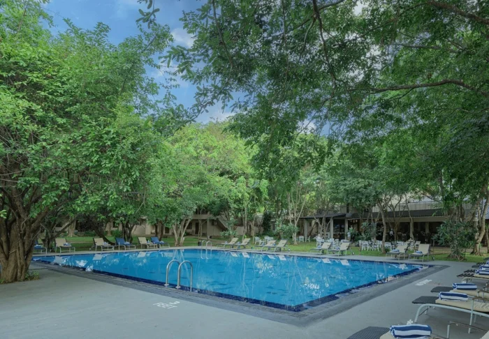 Inmitten der üppigen Gartenanlage des Rajarata Hotels erwartet Sie der ruhige Poolbereich. Hier können Sie auf einer Sonnenliege entspannen, ein erfrischendes Bad genießen oder einfach nach einem ereignisreichen Tag in der Stadt der Tempel die warmen Sonnenstrahlen auskosten.