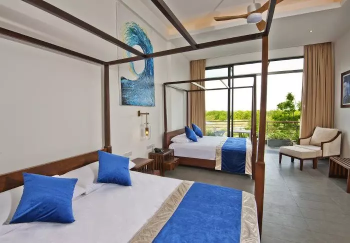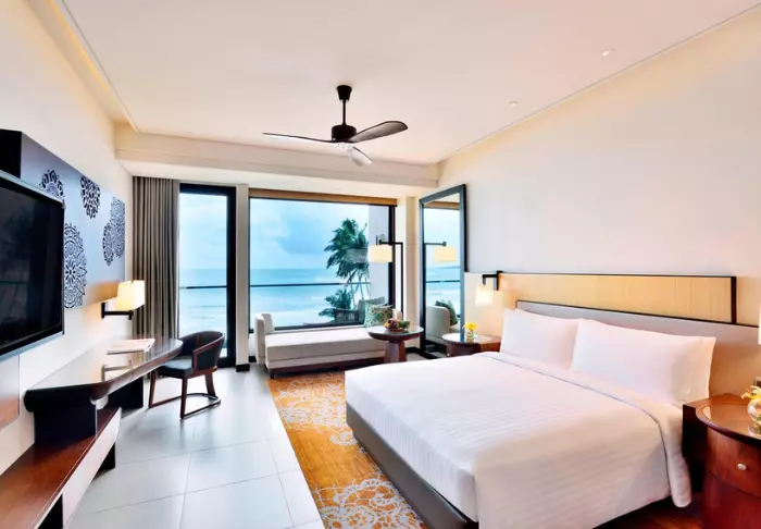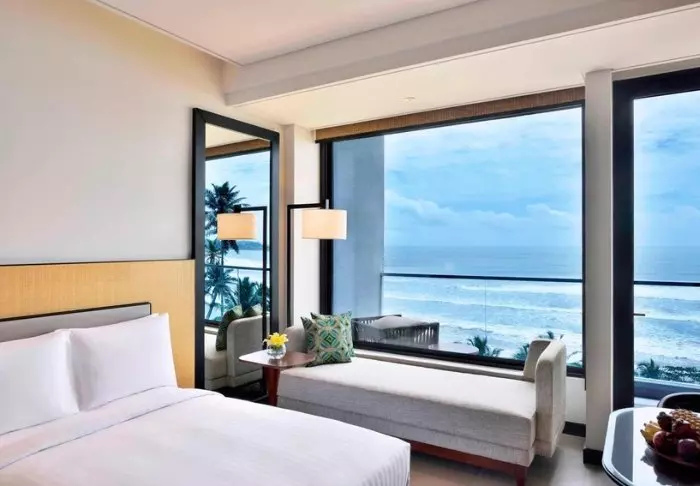 Wenn Sie sich ein wenig zusätzlichen Luxus gönnen möchten, können Sie auf das Weligama Bay Marriott Resort & Spa upgraden. Alle Zimmer verfügen über große Panoramafenster mit Blick auf den Strand, sodass Sie das spektakuläre Meer direkt von Ihrem eigenen Zimmer aus genießen können! Treten Sie hinaus auf Ihre private Terrasse und lassen Sie den Blick über die sanften Wellen schweifen, die an den Sand rollen, während sich die Palmen in der Brise wiegen.