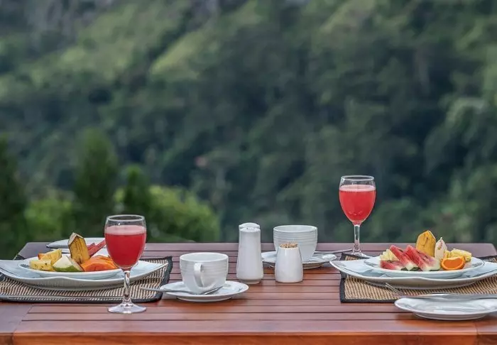 Vom Restaurant des Hotels aus sieht man ebenfalls auf die grünen Berge. Hier werden Gerichte aus der sri-lankischen und der westlichen Küche sowohl als Buffet als auch à la carte serviert. Im Licht des Sonnenuntergangs kann man ein Getränk, ein Glas Wein oder ein Bier von der Bar genießen. Sie können außerdem ein Tuk-Tuk in die Stadt Ella nehmen, wo es mehrere tolle Restaurants und Bars gibt.