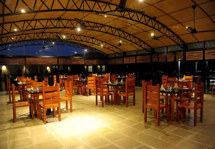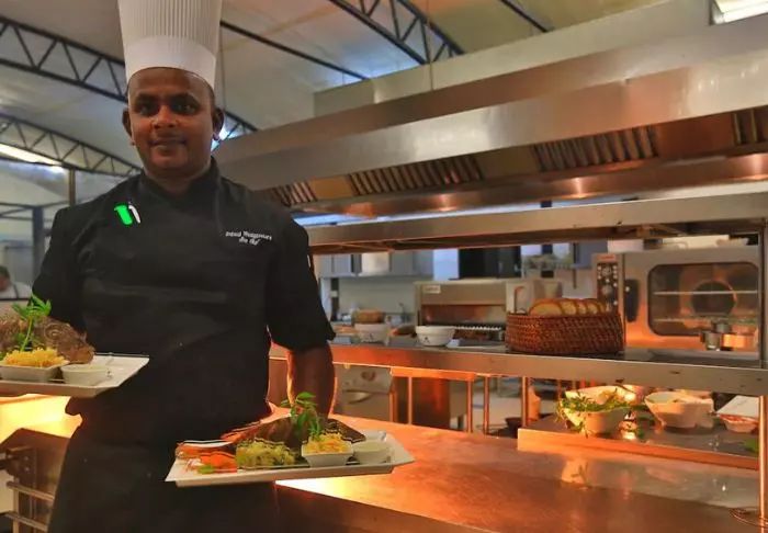 Das Restaurant des Chaaryas serviert leckere, traditionell sri-lankische, orientalische und westliche Gerichte aus frischem Gemüse, frischem Obst, frischem Fisch und frischem Fleisch aus den umliegenden Dörfern.