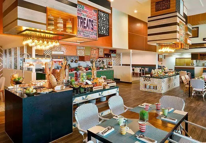 Im Hotel gibt es drei Restaurants und Bars. Im Restaurant Fusion werden ein erlesenes Frühstücksbuffet sowie asiatische und internationale Gerichte aus frischen und handverlesenen Rohwaren serviert. Ganz oben im Hotel befindet sich die gemütliche Bommu Rooftop Bar, wo Sie in bequemen Möbeln auf der Dachterrasse Cocktails, Drinks und leichte Snacks im Schein des Sonnenuntergangs genießen können. Von hier aus hat man außerdem ein phänomenales Panorama auf die Bucht, den Strand und die Swimmingpools des Hotels. Zwischen dem Strand und dem großen Swimmingpool befindet sich der Shoreline Beach Club. Dort können Sie den kleinen Hunger und Ihren Durst zu Mittag stillen.