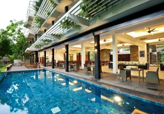 Das absolute Highlight des Resorts ist zweifellos der großzügige Poolbereich, der Ihnen eine spektakuläre Aussicht bietet, die Sie noch lange in Erinnerung behalten werden. Nach einer erfrischenden Abkühlung lädt der Beckenrand des großen Infinity-Pools dazu ein, die abwechslungsreiche Dschungellandschaft mit dem eindrucksvollen Löwenfelsen im Hintergrund auf sich wirken zu lassen. Während Ihres Aufenthalts können Sie Yoga praktizieren, meditieren oder sich bei einer entspannenden Behandlung im Ayur Vie Spa verwöhnen lassen. Wer es aktiver mag, dem stehen auch ein Fitnessraum und ein Badmintonplatz zur Verfügung.