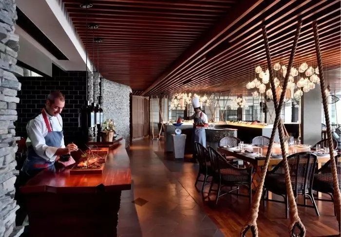 Ihre Halbpension genießen Sie im Hauptrestaurant des Hotels, wo Sie morgens wie abends kulinarische Köstlichkeiten erwarten. Hier entdecken Sie ein vielfältiges Buffet mit verlockenden Spezialitäten – frisch zubereitet an verschiedenen Outdoorkochstationen, die von Pfannkuchen und Omeletts bis hin zu gegrilltem Fisch und asiatischen Highlights alles bieten. Ob Sie im stilvollen Innenbereich oder draußen unter freiem Himmel speisen – es eröffnet sich Ihnen stets ein herrlicher Blick in die umliegende Natur und auf den funkelnden Sternenhimmel.