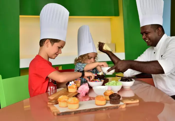 Die Zeit vergeht wie im Flug im großzügigen Poolbereich des Hotels, der über zwei große Pools und ein separates Kinderbecken verfügt. Hier kann die ganze Familie ein erfrischendes Bad nehmen oder an den Aktivitäten des Hotels teilnehmen. Alternativ finden Sie bestimmt Ihren Lieblingsplatz am Strand – mit guter Musik in den Ohren und einem kühlen Getränk in der Hand. Wenn Sie sich etwas Besonderes gönnen möchten, besuchen Sie das Ayurveda Spa des Hotels, das sowohl großen als auch kleinen Gästen mit wohltuenden Behandlungen und aromatischen Ölen offensteht.