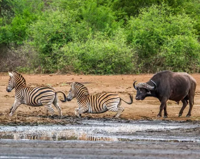 Giraffen und Zebras sind hier natürlich ebenfalls in großer Zahl vorhanden, und der Park ist zudem die Heimat vieler verschiedener Vogelarten. Sie können ein Fernglas mitbringen, damit Sie dem Guide helfen können, nach den Tieren Ausschau zu halten.