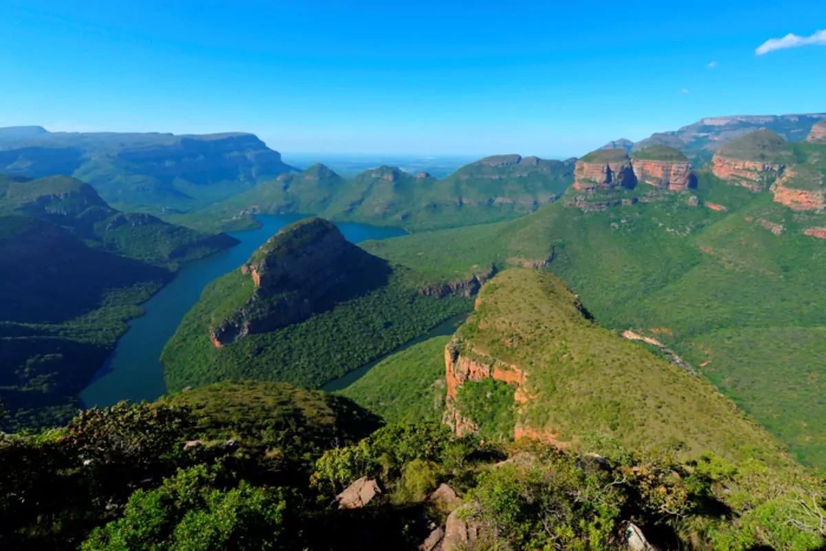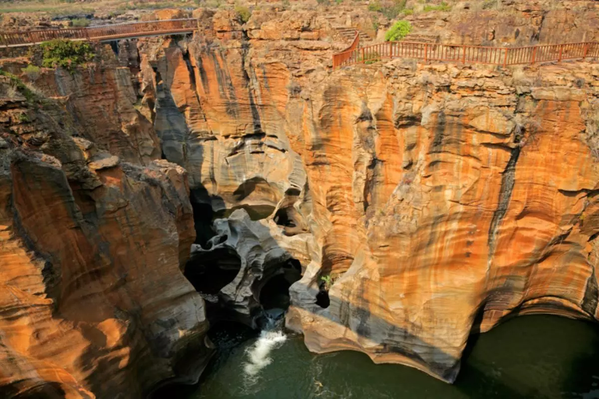 Heute unternehmen Sie eine atemberaubende, ganztägige Fahrt auf der Panoramaroute durch die Drakensberge. Die roten Felsen bilden einen fantastischen Kontrast zu den grünen Bäumen und Pflanzen. Sie können unterwegs die Aussicht über den Blyde River Canyon genießen, der mit seinen 700 m Tiefe und 60 km Länge als drittgrößter Canyon der Welt gilt. Sie machen Halt an den drei wichtigsten Aussichtspunkten entlang des Canyon: God’s Window, Bourke’s Luck Potholes und den drei Rondavels. Bei Letzteren handelt es sich um drei gewaltige, runde Felsen, die an die runden Hütten der Einheimischen erinnern. Sie kommen auch an vielen Wasserfällen vorbei und machen an einem sogar Halt. Das könnten z. B. die Berlin Falls sein, deren Wasser sich 150 m tief in einen See stürzt, oder die Lisbon Falls, wo das Wasser an einem senkrechten Felsen 92 m hinabstürzt, um dann wieder in einem Fluss weiterzulaufen. Der Guide wird entscheiden, wo Halt gemacht wird. Zu den spektakulärsten Sehenswürdigkeiten des Tages gehören sicherlich die Bourke’s Luck Potholes. Dabei handelt es sich um tiefe Strudellöcher, die durch Auswaschungen über viele tausende Jahre entstanden sind. Auf einigen Brücken können Sie ganz nahe an dieses Naturphänomen herangelangen.