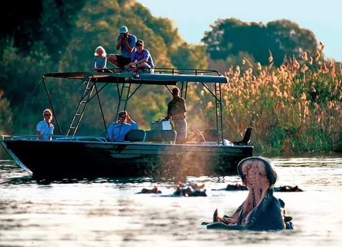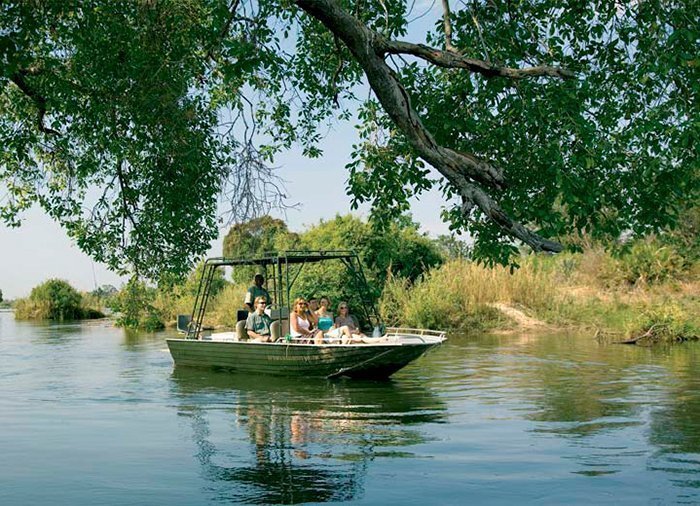 Unser Partner in Zambia gehört zu jenen wenigen Gesellschaften, denen es erlaubt ist, mit dem Boot auf dem Teil des Flusses Sambesi zu fahren, den man „Lower Zambezi“ nennt, also den Teil des Flusses, der am dichtesten bei den Victoriafällen ist. Mit speziell hierfür entworfenen Booten kann man bis zu den kleinen Inseln über dem Wasserfall fahren und einen herrlichen Ausblick auf den „Rauch, der donnert“ und die vielen Regenbögen genießen, die die Wassertropfen am Himmel erzeugen.