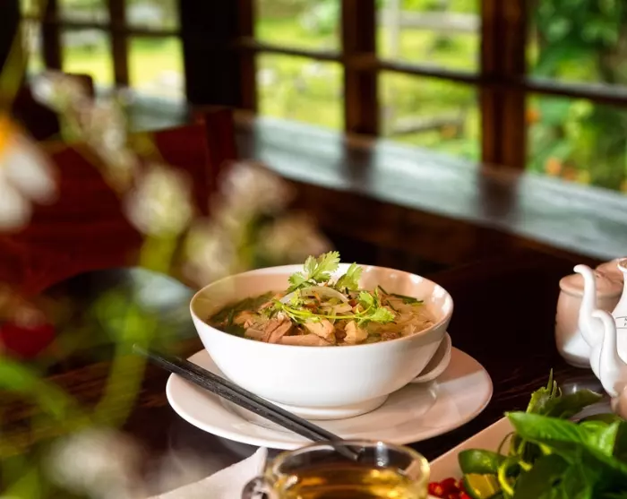 Die angebotenen Speisen entsprechen dem gleichen, einfachen und nachhaltigem Ansatz. Das Menü ist nicht verschwenderisch, sondern besteht aus einer durchdachten Auswahl authentischer vietnamesischer Gerichte. Um die Lebensmittelverschwendung zu mindern, wird auf große Buffets verzichtet.