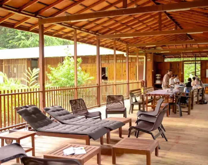 In der Nanga Sumpa Lodge übernachten Sie mitten im Dschungel – eingebettet in Komfort und gleichzeitig umgeben von schlichten, authentischen Gegebenheiten. Die Zimmer bieten Privatsphäre und alle nötigen Annehmlichkeiten. Die Mahlzeiten werden aus lokalen Zutaten zubereitet, die Veranda wird gemeinsam genutzt, und der Aufenthalt ist geprägt von den Eindrücken und Geräuschen des Regenwaldes sowie der herzlichen Gastfreundschaft des Stammes. Viele der Angebote der Lodge werden von der Iban-Gemeinschaft organisiert; die Erträge teilen sie sich mit Borneo Adventure.