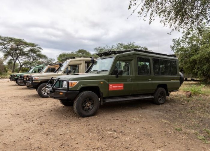 Bei der Safari fahren Sie in einem Allradfahrzeug mit Platz für 7 Personen. Bei sämtlichen Autos kann das Dach während der Safari geöffnet werden.