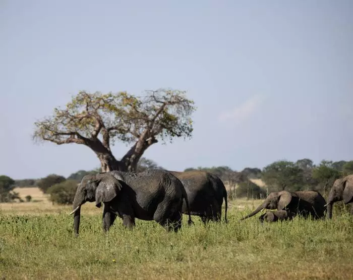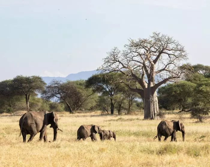 An diesem Tag steht eine Safari im Tarangire-Nationalpark auf dem Programm. Da Sie direkt außerhalb des Parks übernachten, haben Sie den ganzen Tag Zeit, um hier auf Safari zu gehen. Zu den Attraktionen gehören auch die Elefanten, die Sie hier in Hülle und Fülle erleben können! Der Park beherbergt die größte Anzahl von Elefanten im gesamten Norden Tansanias. Es gibt mehrere Gründe, warum sich Elefanten gerne hier aufhalten. Einer der Gründe ist, dass sie in Tarangire immer Wasser finden können. Selbst in der trockensten Zeit des Jahres, wenn der Fluss fast ausgetrocknet ist, wissen die Elefanten, wo sie nach Wasser graben können.