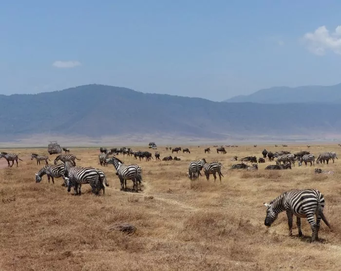Von der Serengeti geht es weiter zum Ngorongoro-Krater. Die Fahrt erfolgt mit dem Auto, sodass es sich beinahe wie ein langer Game Drive anfühlt.
